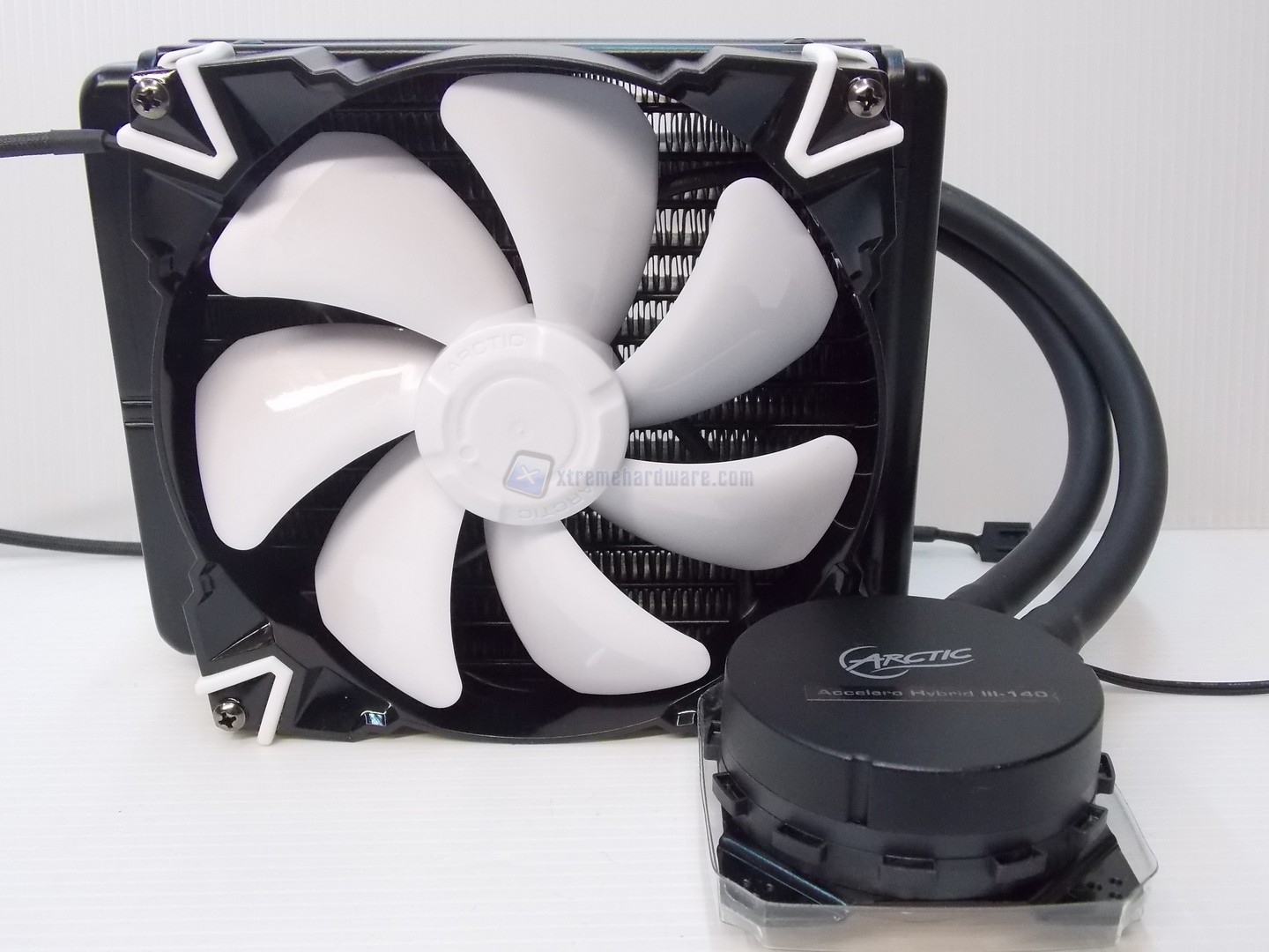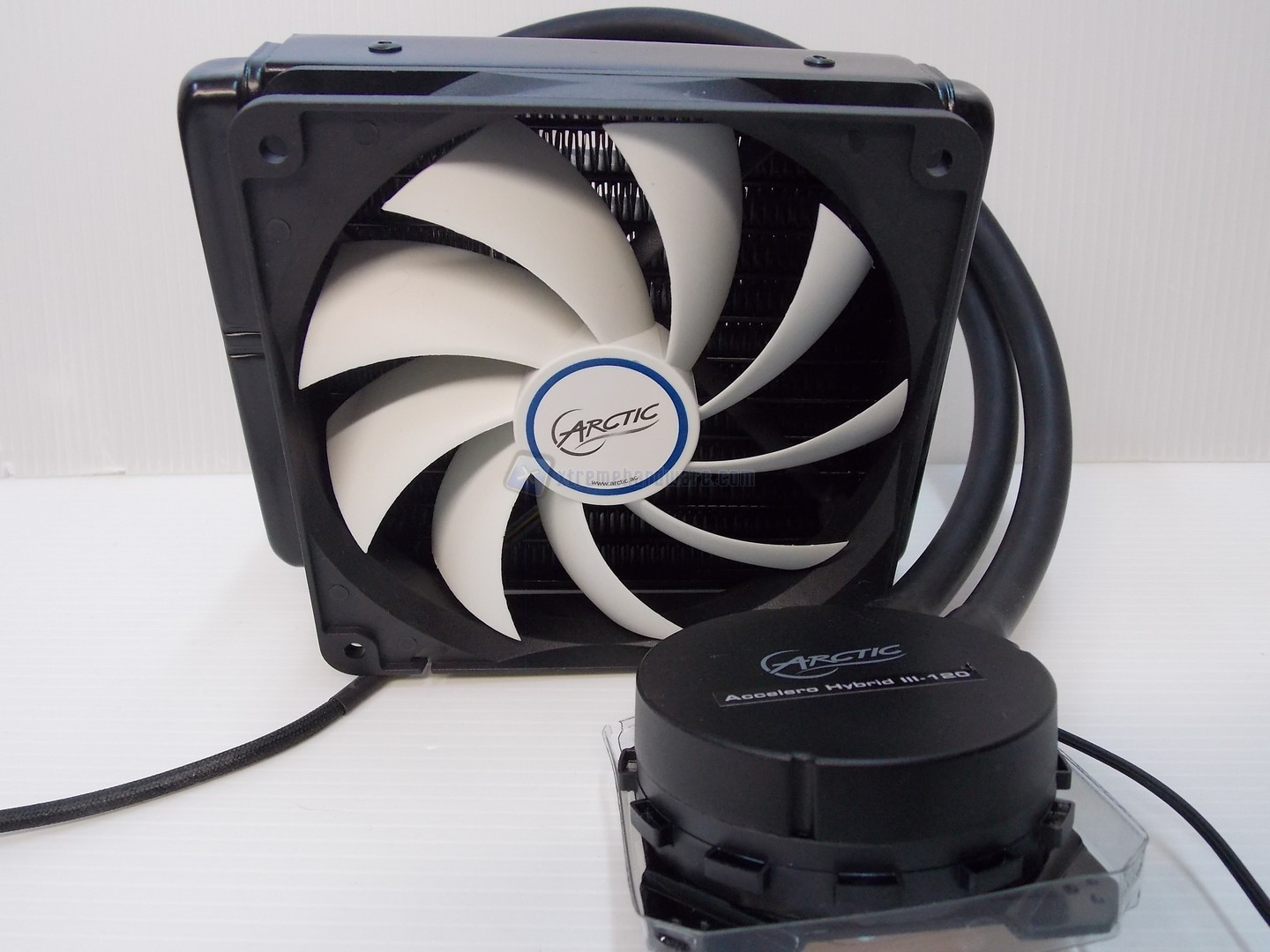 L’Accelero Hybrid III appartiene alla terza revisione della linea produttiva di AIO con radiatore da 120 e 140mm. La prima revisione non era di produzione ARCTIC ma sfruttava una licenza Asetek, applicata per la prima volta ad un dissipatore per schede video. L’Hybrid III, presentando la medesima tipologia di tubazioni e radiatore della seconda revisione, similmente a quest'ultima presenta una struttura identica all’Antec Kühler 620, ovvero un set di tubazioni della migliore tipologia in commercio, un radiatore dallo spessore di 25mm, una ventola da 120mm (ARCTIC), un waterblock nella parte terminale ed una pompa integrata nella stessa struttura, oltre però in questo caso ad un sistema di dissipazione del comparto VRM con ventolina dedicata e dissipatori passivi di generose dimensioni. Per l'installazione, Arctic indica fino a quattro possibili configurazioni all'interno del case, a seconda della posizione del radiatore (fronte o retro) e del flusso d'aria generato dalla ventola da 120/140 mm (in immissione o estrazione). Questo progetto quindi coniuga la doppia azione della dissipazione a liquido e quella ad aria, è in grado di raffreddare anche i chip di memoria e la circuiteria di alimentazione, VRM, presente sul PCB, grazie al particolare plate posteriore (che presenta una superficie inferiore rispetto alla seconda revisione), dissipato passivamente o attivamente, a seconda della configurazione interna del case. Il radiatore invece è dissipato dalla singola ventola da 120/140mm.