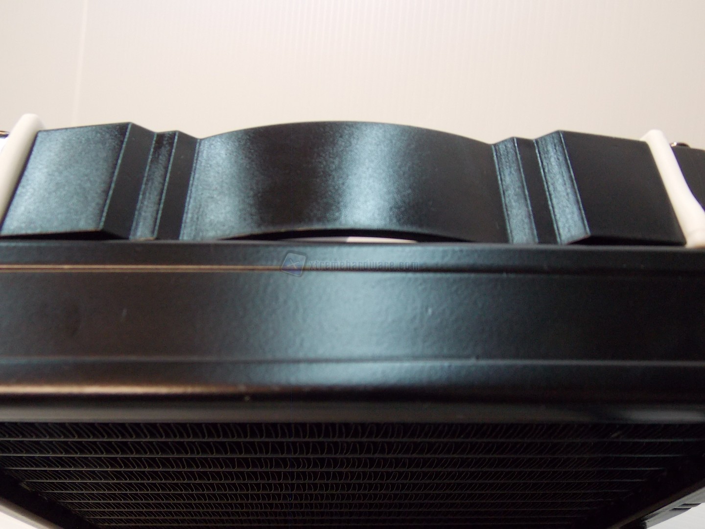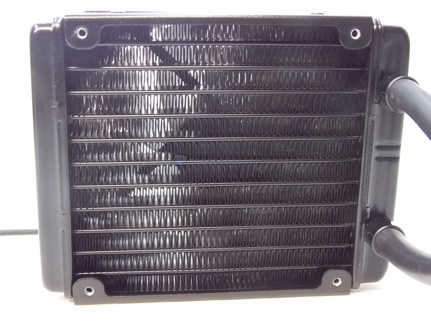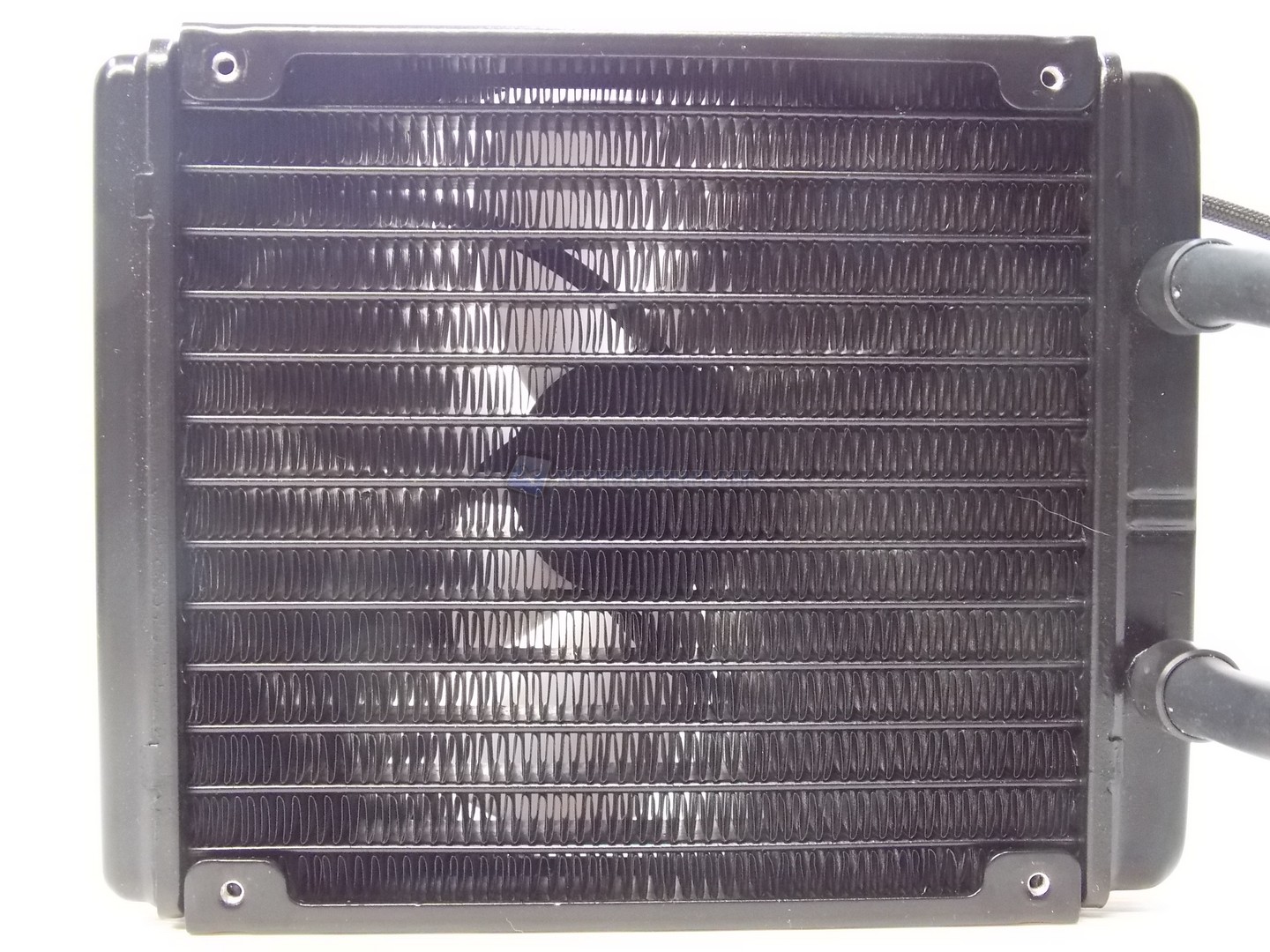 Il dissipatore, per chi non conoscesse questa categoria di modelli, ha un radiatore della larghezza ed altezza grossomodo di una singola ventola da 140mm (120 ovviamente nella versione che vedremo fra poco), questo significa che sarà compatibile con la quasi totalità dei case ATX di fascia alta; c’è da fare una precisazione però: bisogna fare attenzione alla porzione superiore poiché la presenza delle tubazioni potrebbe far si che possano collidere con qualche elemento nel case, specialmente se mini-ITX. Fate attenzione all’atto dell’analisi di compatibilità. Lo spessore del radiatore è di soli 28mm (senza ventola), rendendo l’installazione molto agevole, e potenzialmente interessante per via dell’utilizzo di configurazioni in Push/Pull, generalmente da preferire rispetto alla singola Push anche se abbiamo visto che in questo caso non ce ne sarà bisogno. Dal radiatore partono due tubi contenenti del liquido refrigerante, sostanzialmente acqua e sostanze sia anticorrosive che antibatteriche, che finiscono la loro corsa all’interno di una struttura circolare. Quest’ultima, diversamente dalle soluzioni per CPU finora introdotte, necessita solamente dell'innesto di quattro lunghe viti posteriori, per l'ancoraggio al PCB. Fotografia dello spessore senza ventola: